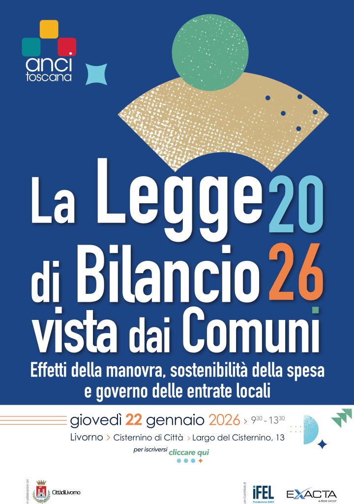 Giovedì 22 gennaio, dalle 9:30 alle 13:30, Livorno ospiterà un incontro di approfondimento dedicato agli effetti della Legge di Bilancio, con un focus sulla sostenibilità della spesa e sul governo delle entrate locali. L’appuntamento, promosso da Anci Toscana in collaborazione con il Comune di Livorno, con il contributo di IFEL – Fondazione ANCI ed EXACTA SpA, riunirà amministratori e professionisti del settore per analizzare le principali novità della manovra finanziaria e il loro impatto sui Comuni della Toscana.